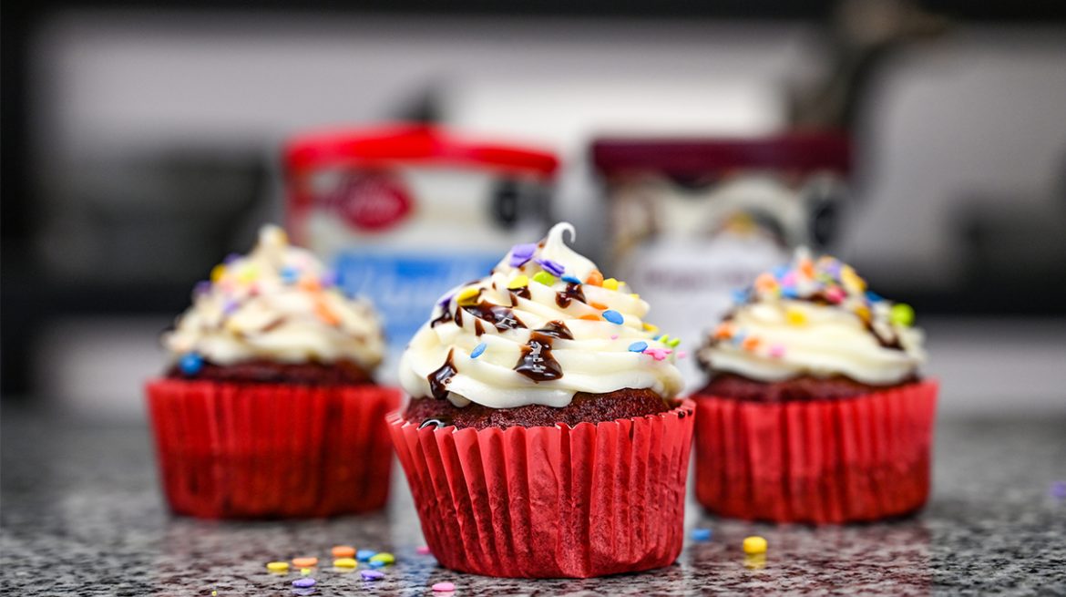 La tradicional receta de cupcakes red velvet con un twist que te va a encantar, para hacerlos todavía más deliciosos.